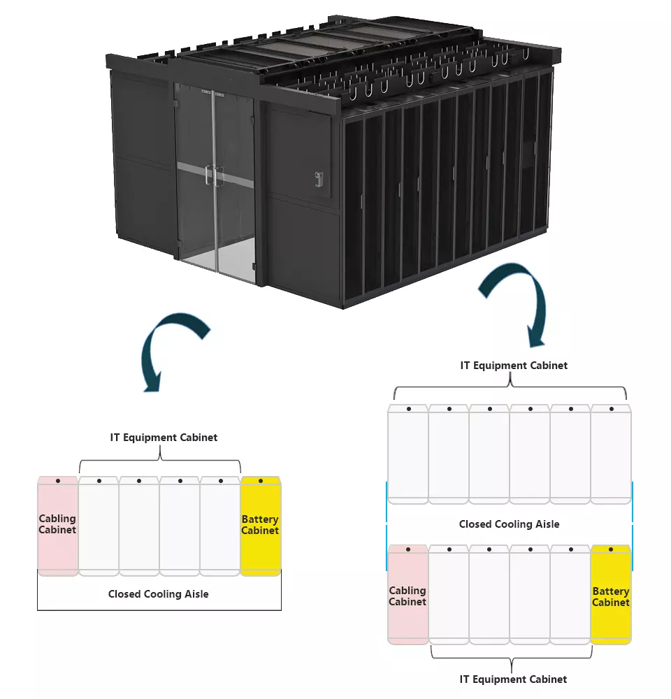حل مركز البيانات الذكي من Gcabling، يعتمد مفهوم تصميم الكل في الرف. تصميم متكامل يشتمل على أنظمة فرعية متعددة مثل نظام الخزانة، ونظام التبريد، ونظام الإمداد بالطاقة والتوزيع، ونظام المراقبة، وما إلى ذلك. يمكن لوحدة واحدة أن تدعم التوسعة المرنة لما يصل إلى 10 خزانات. يتطلب مكيف الهواء الدقيق المدمج في الحامل مساحة خزانة صغيرة تبلغ 0.72 متر مربع، مما يوفر 50% أو أكثر من المساحة مقارنةً بمراكز البيانات التقليدية. يمكن أن يقلل الجمع بين أنظمة الممرات الباردة والساخنة , والتبريد القريب من النهاية من PUE إلى أقل من 1.34، تنخفض تكلفة الطاقة مقارنة بمركز البيانات التقليدي بأكثر من 45%.